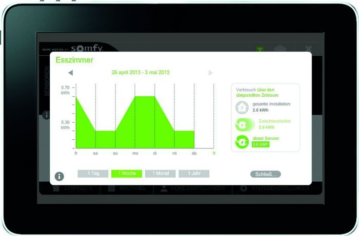 Eltako的插座可以集成到法國尚飛(Somfy)的TaHoma智能家居系統,從而通過手機、平板、網頁版上的可視化應用看到接入該插座的用電設備的能耗情況: