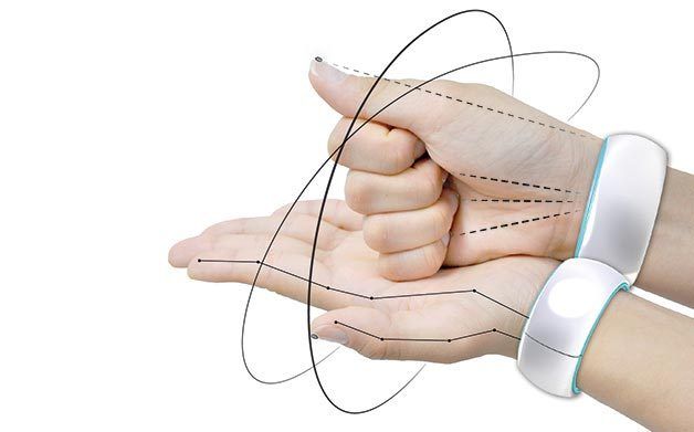 智慧手語翻譯手環讓聾啞人使用手語與聽力正常人交流,它的原理是利用肌電信號的傳感器、陀螺儀傳感器和距離傳感器對手勢進行解碼。從而進行溝通。