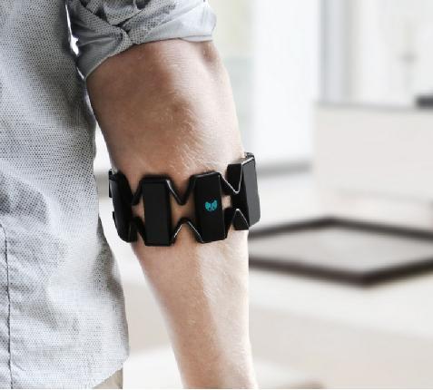 由Thalmic Labs研發的Myo智慧臂帶是一款非常聰明而且好用的智慧衣著產品,並且很有可能改變我們的工作和生活方式。帶上Myo臂帶的過程雖然很簡單,但是它卻能夠完成許多複雜的工作,可以跟踪佩戴者手部和上臂的動作,然後便可以根據這些手勢來控制技術所有的設備,包括你的計算機、筆記本電腦或智慧型手機。看起來非常像鋼鐵俠托尼•斯塔克控制自己的全息計算機,只是沒有圖像而已。