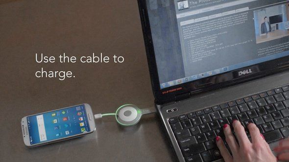 GOkey的另一端設計為圓形,內部有藍牙連接裝置,移動電源和連接手機使用的數據線。作為一款手機應急使用的移動電源,它大約有400mAh的電量,在GOkey充滿電的狀態下可以讓你的手機繼續使用兩個小時。