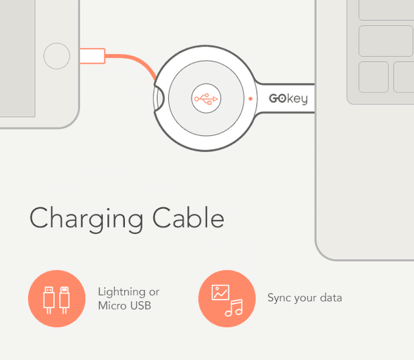 GOkey是由金屬和部分高質量塑料製成,結實耐用而且不易損壞,同時還有防水功能。GOkey鑰匙圈的一端是USB插口,可以連接在電腦上面為它進行充電,或者當做U盤來傳輸數據。根據型號不同,存儲空間分為8GB,16GB,32GB三種不同大小可供選擇。