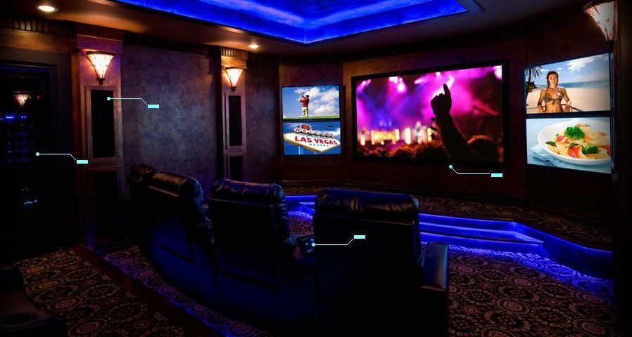 這間藍色激情 智慧娛樂 體驗廳提供 control4 影音解決方案全面體驗服務,高品質的座椅,震撼的多媒體音效,高端的媒體服務器,讓體驗者能體驗到 智慧娛樂 真正的價值所在。
